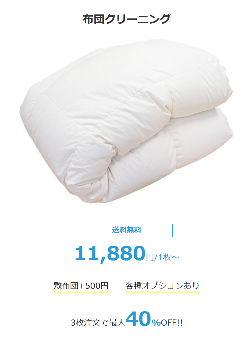 数あるクリーニング店の中から「安いから嬉しい」「サービスに満足した」「リピーターになった」など本当に利用して良かった!と人気の布団クリーニング、当サイトから申し込みが多かった第1位はこちらです!